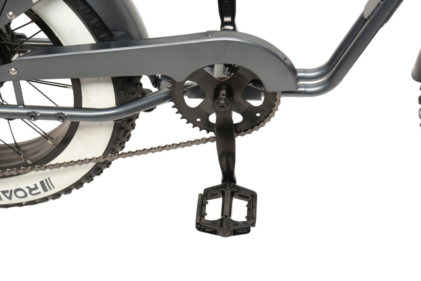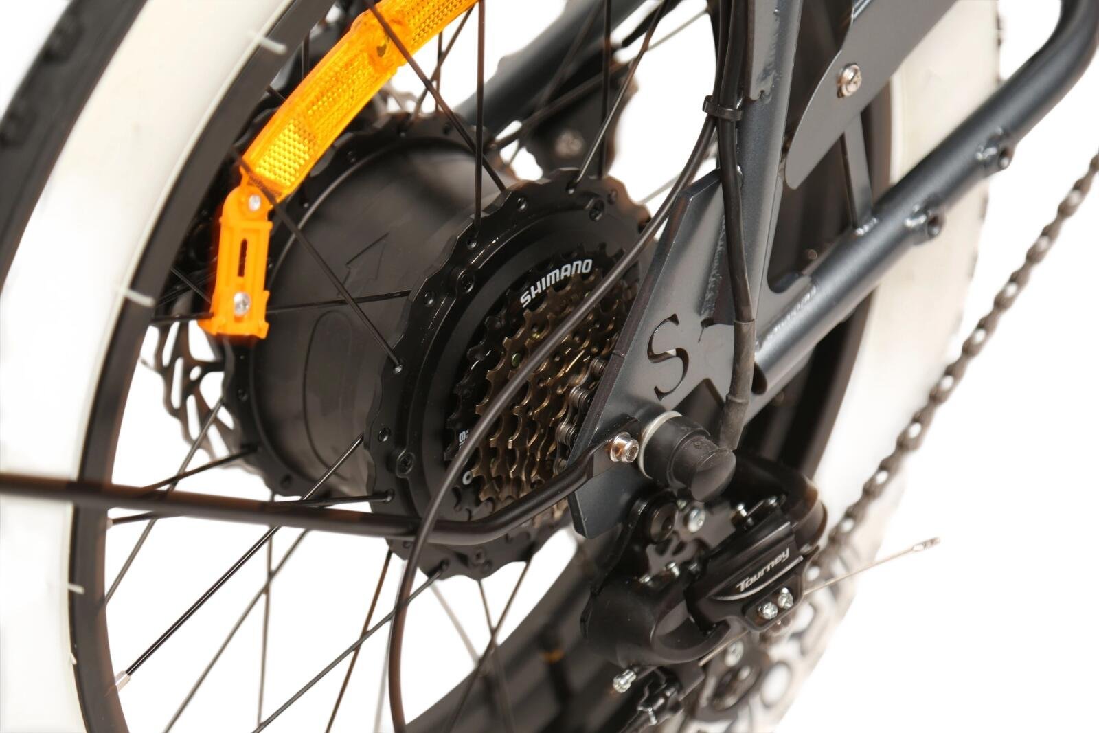De E Times Tourist E-bike is uitgerust met stevige 20 inch banden, die speciaal zijn ontworpen voor off-road gebruik. Deze vette banden bieden uitstekende grip en stabiliteit, waardoor je zelfverzekerd over verschillende terreinen kunt rijden. Het stalen frame, dat TIG-gelast is voor extra duurzaamheid, zorgt ervoor dat deze e-bike bestand is tegen de uitdagingen van dagelijks gebruik.