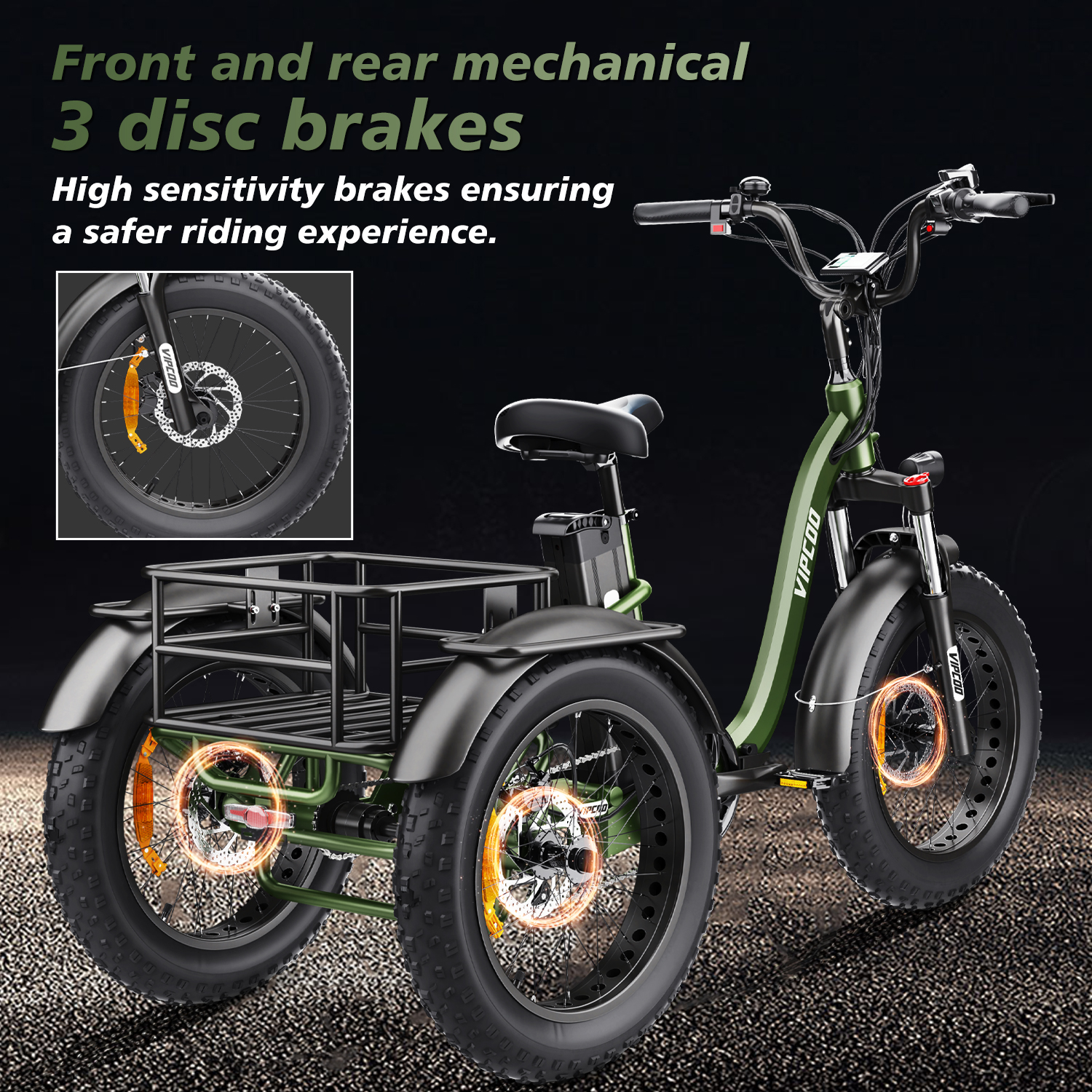De fiets is voorzien van krachtige verlichting en reflectoren, zodat je ook in het donker veilig de weg op kunt. Geen enkele kans om onopgemerkt te blijven!
