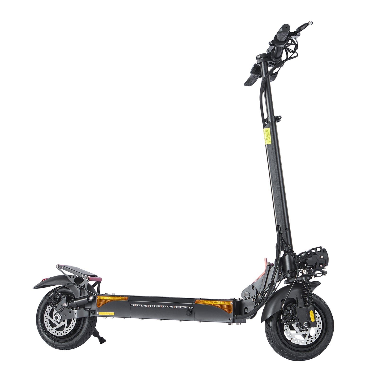 Je veiligheid is onze prioriteit. De step is voorzien van schijfremmen voor en achter, aangevuld met een E-rem voor extra controle. De 14” luchtbanden zorgen voor een soepele rit, terwijl de schokdemper met dubbele veer voor en achter elke oneffenheid op de weg absorbeert. Daarnaast zijn de M5 Elite uitgerust met krachtige koplampen, richtingaanwijzers en een achterlicht, zodat je ook in het donker zichtbaar bent.