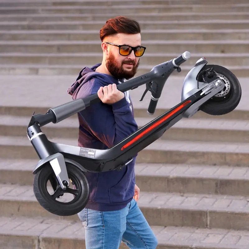 Deze elektrische vouwfiets is uitgerust met 10-inch rubberen vacuümbanden die zorgen voor een soepele en comfortabele rit, zelfs op oneffen oppervlakken. Je zult geen last hebben van schokken of hobbels tijdens je avonturen door de stad.