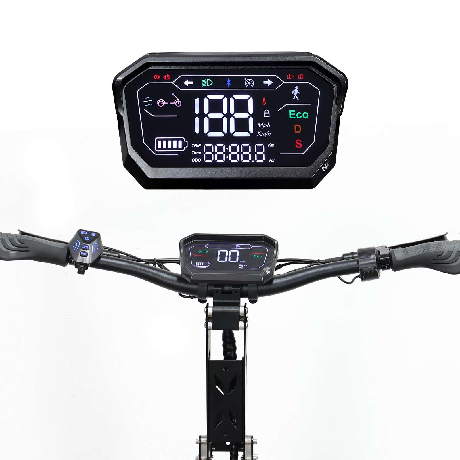 Je veiligheid is onze prioriteit! De MT30 is uitgerust met hydraulische schokdempers aan de voorkant en een veer schokdemper aan de achterkant, voor een soepele rit, ongeacht het terrein. Bovendien zorgt de dubbele koplamp van aluminiumlegering ervoor dat je altijd goed zichtbaar bent, zelfs in het donker. En met het geïntegreerde NFC antidiefstal formulier ben je verzekerd van een extra laagje veiligheid.