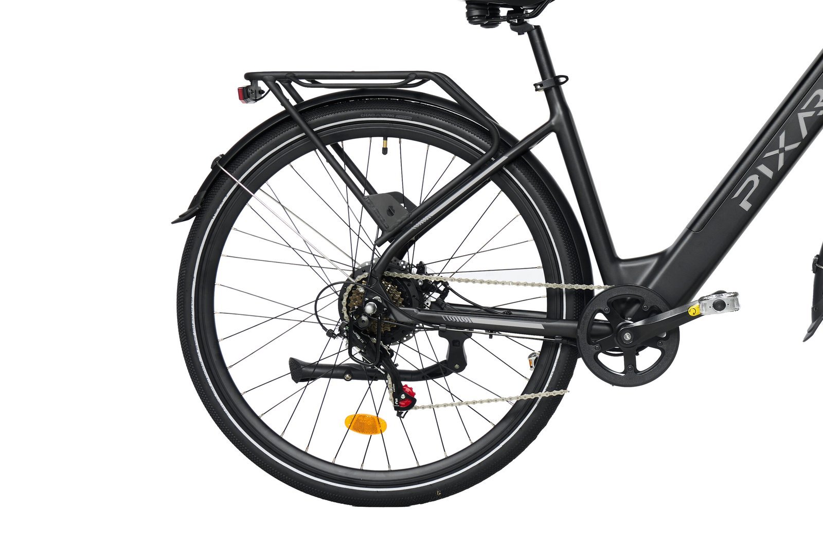 Met de 36V 10,4Ah lithium-ion batterij geniet je van een bereik van 35 tot 45 km per lading. Dit is perfect voor stadsforenzen of voor een ontspannen rit in het weekend. De batterij is bovendien verwijderbaar, wat het opladen eenvoudig maakt. Je kunt de batterij gewoon meenemen naar binnen en op een handige plek opladen. Binnen 4 tot 6 uur is je fiets weer klaar voor gebruik!Kenmerken Pixar City 1 elektrische fiets
