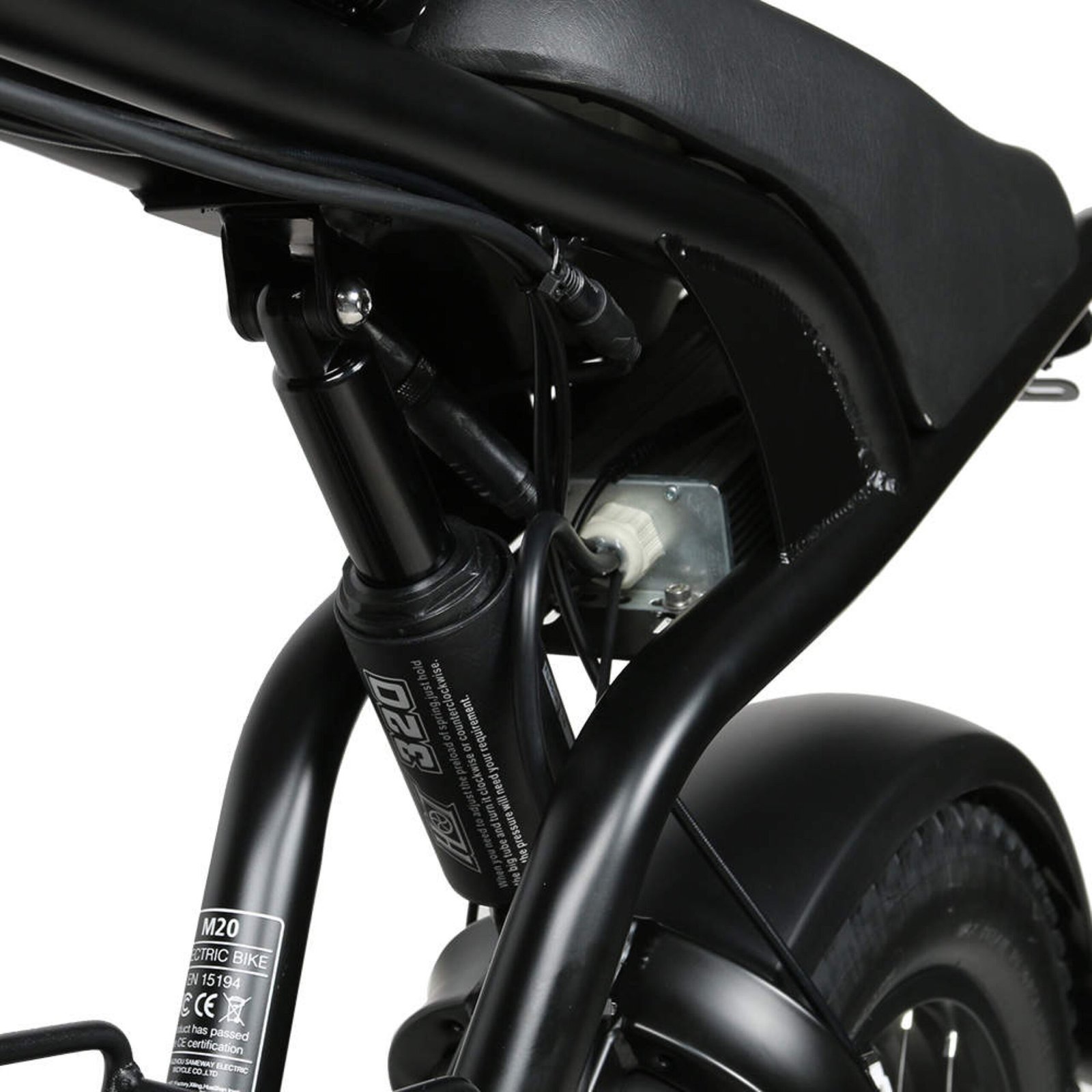 Bij de M20 Fatbike staat comfort voorop. De dikke banden bieden niet alleen grip, maar ook een comfortabele rijervaring. De PVC spatborden voor en achter beschermen je tegen opspattend water en modder, zodat je ook bij slecht weer probleemloos kunt rijden. Bovendien is de M20 uitgerust met waterdichte voertuigconnectoren voor een veilige en betrouwbare verbinding.