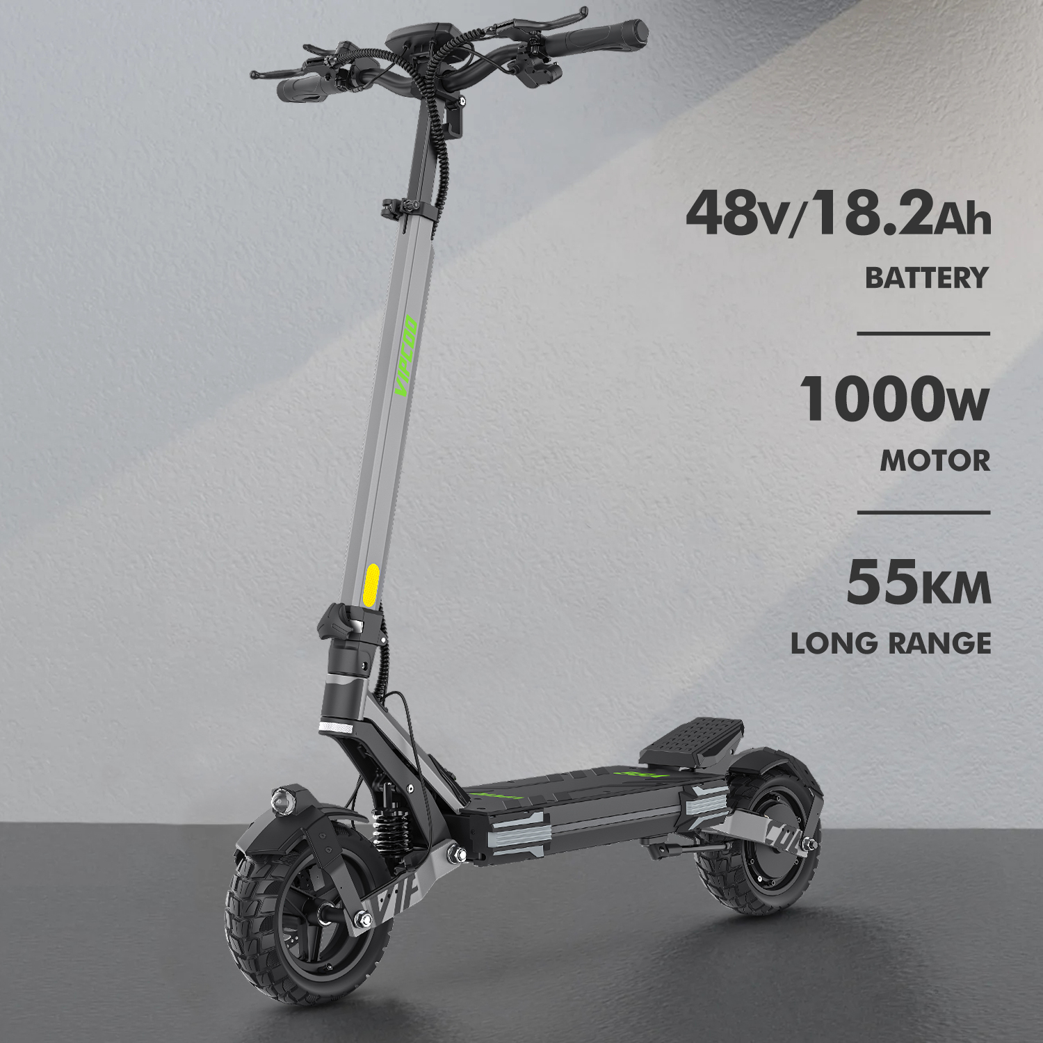 De Vipcoo VS6 is niet alleen snel en krachtig, maar ook ontworpen met jouw comfort en veiligheid in gedachten. De step is uitgerust met voor- en achterveerdempers die zorgen voor een soepele rit, zelfs op oneffen terrein. De 10 inch tubeless offroad banden bieden uitstekende grip en stabiliteit, zodat je met vertrouwen de straten en paden kunt verkennen.