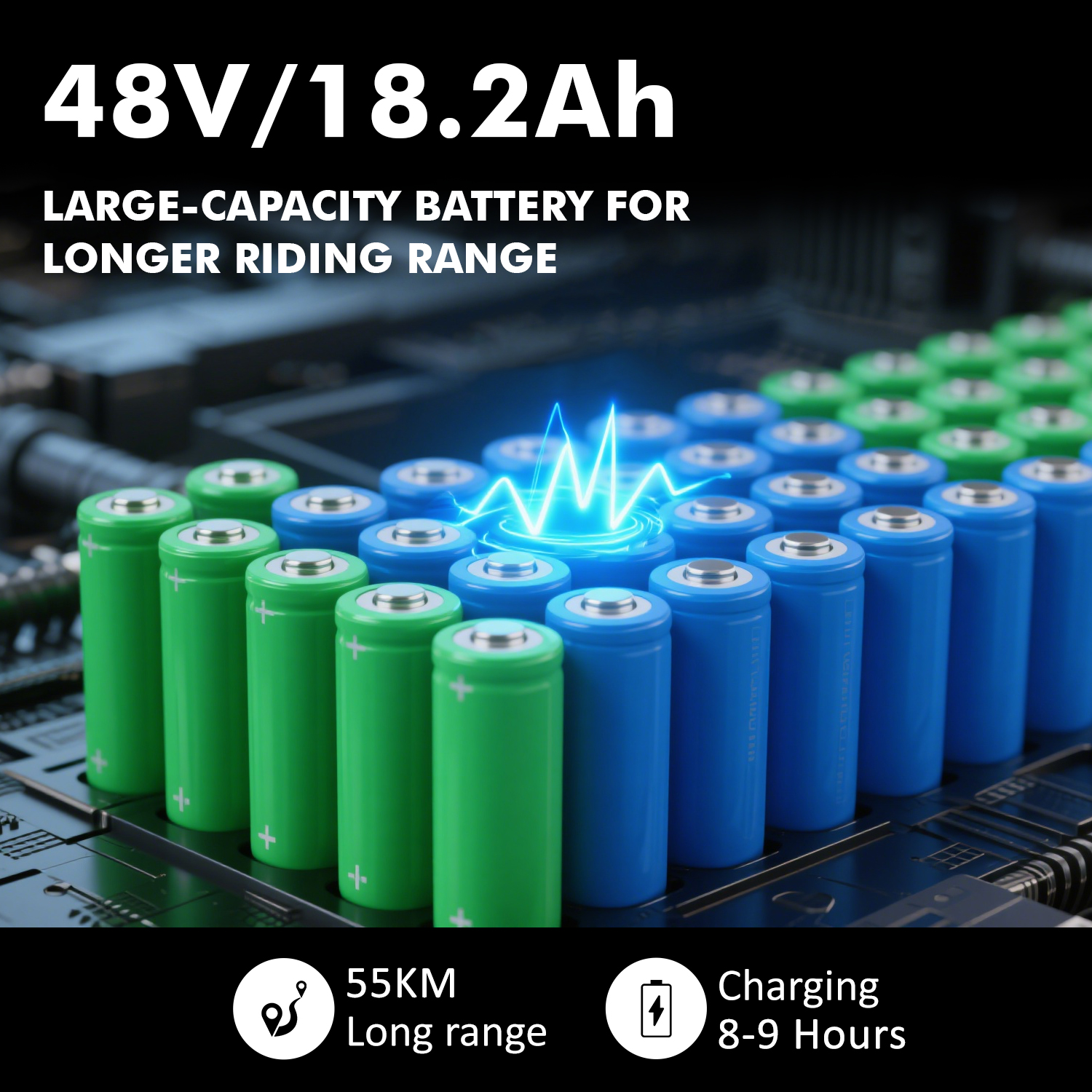 Indrukwekkend bereik van 40-45 km, perfect voor lange ritten.