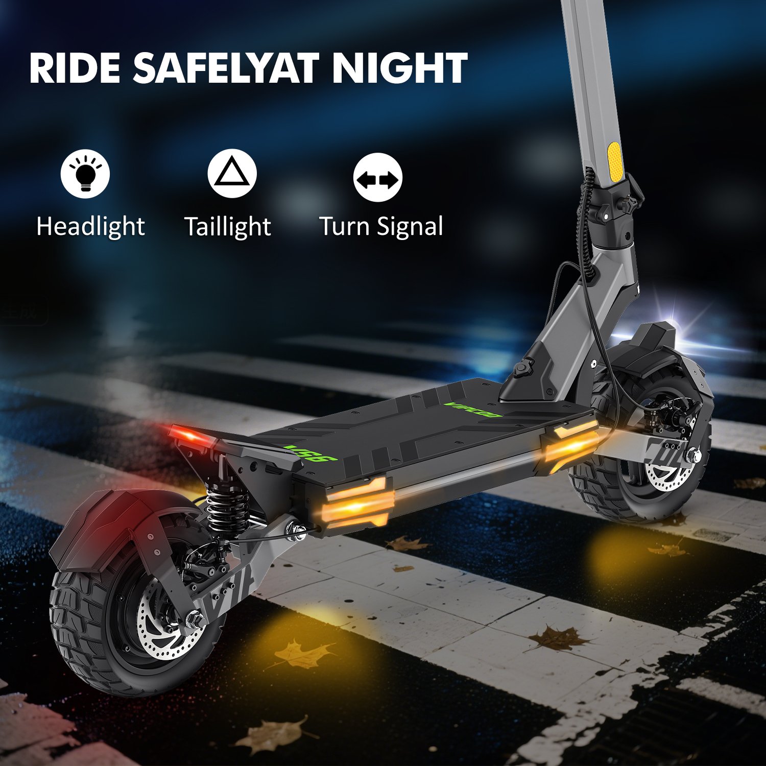 Veiligheid is van groot belang, en de Vipcoo VS6 laat hier niets te wensen over. Het elektrische schijfremsysteem aan zowel de voor- als achterkant zorgt voor een betrouwbare en responsieve remkracht, ongeacht de omstandigheden. Daarnaast zijn er diverse verlichtingsopties, waaronder een krachtige koplamp, richtingaanwijzers, remlichten en stadslicht, zodat je ook in het donker goed zichtbaar bent.