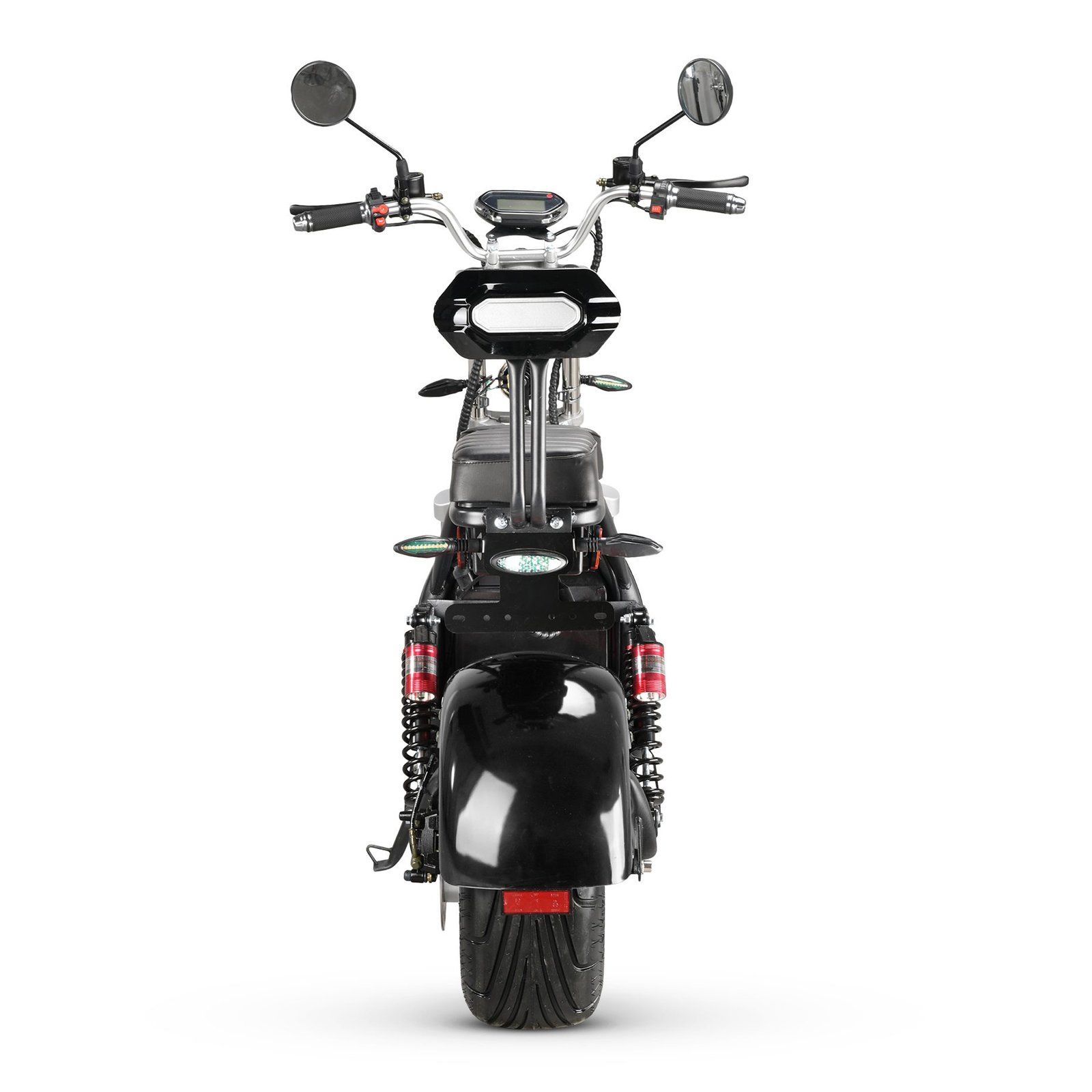Wat betreft veiligheid en betrouwbaarheid heeft deze e-chopper alles wat je nodig hebt. Met schijfremmen, schokdempers voor en achter, evenals voor- en achterlichten en knipperlichten ben je goed uitgerust om veilig op pad te gaan, zelfs bij weinig licht of slechte wegomstandigheden. Bovendien zijn er ook spiegels en een claxon toegevoegd voor extra gemak en veiligheid.